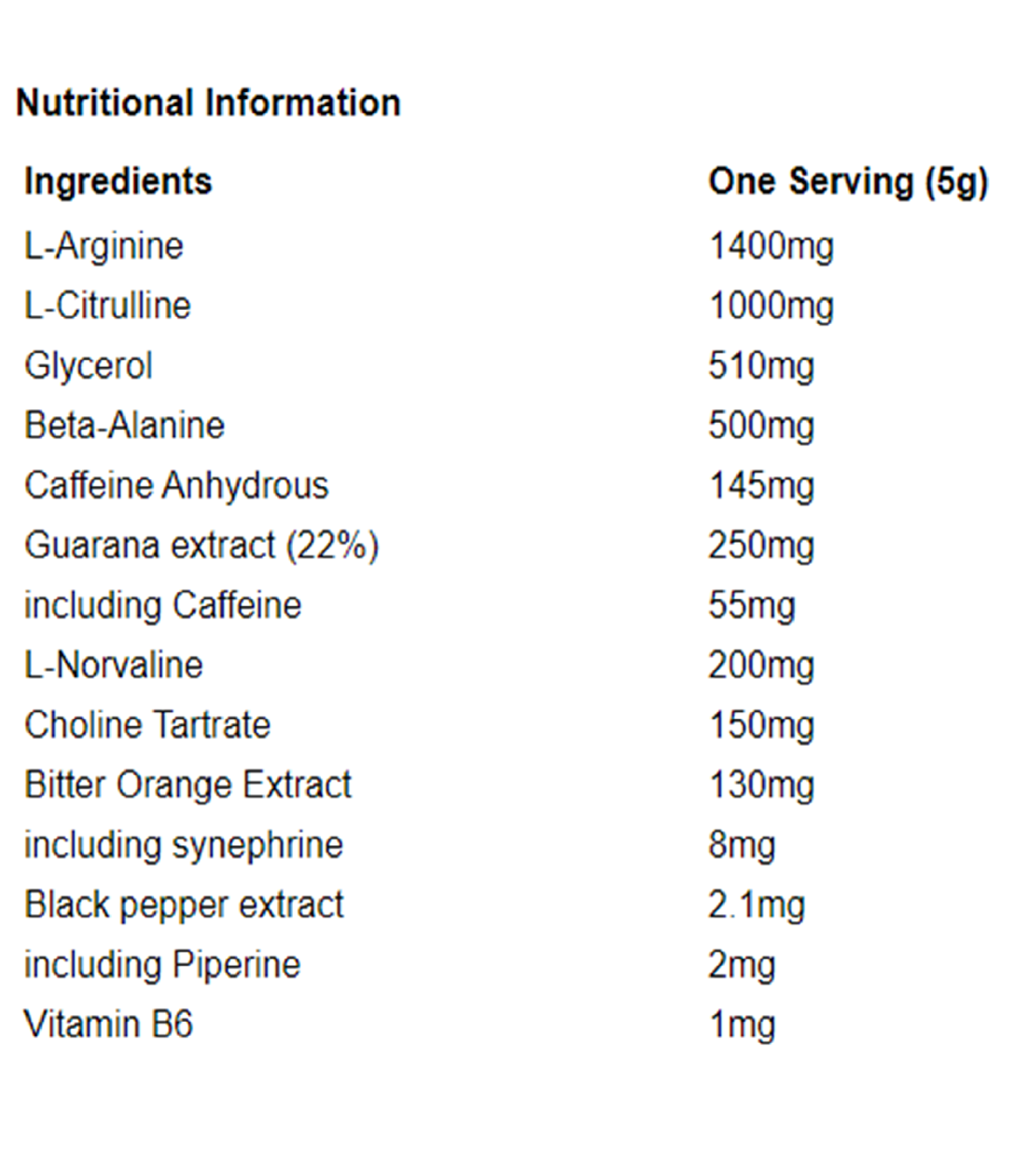 Enerji: Synephrine, L-Norvalin, Beta-Alanin, Kafein