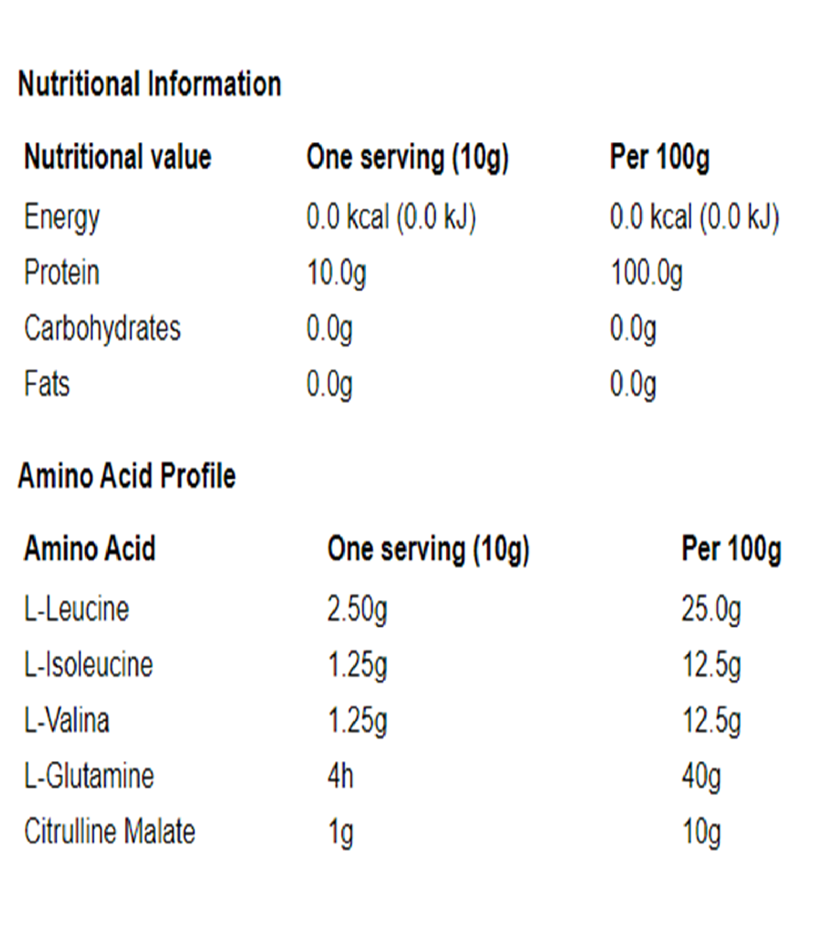 İçindekiler: BCAA instant 2:1:1, L-Glutamin, Sitrülin Malat.