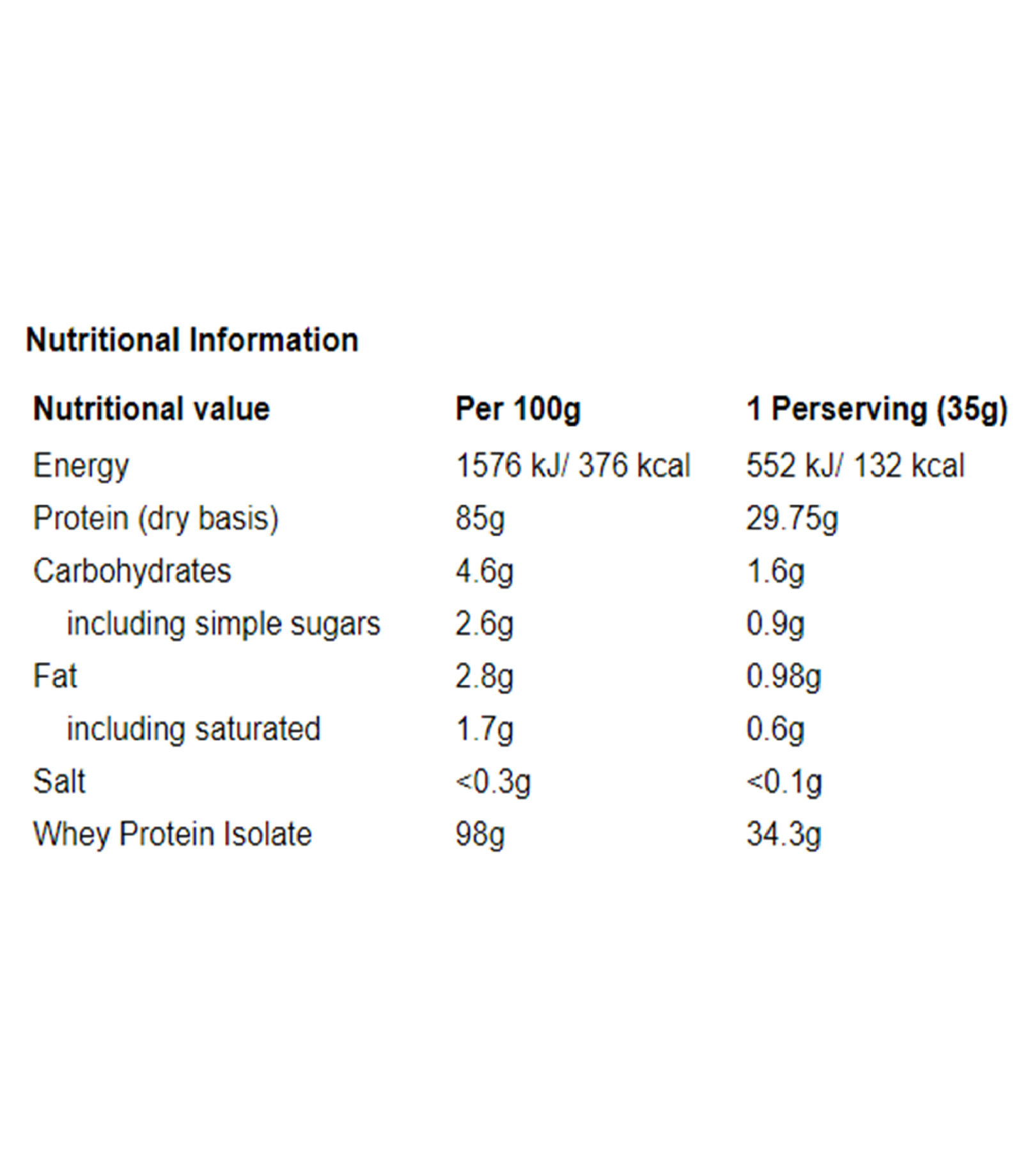 Tatlandırıcı içerir. Mikrofiltrasyonla elde edilen yüksek yüzdeli, en saf peynir altı suyu protein izolatı. Bu benzersiz teknoloji, peynir altı suyunda bulunan proteinlerin maksimum konsantrasyonunu ve denatürasyonunu sağlar. 7Nutrition Whey Isolate 90, 100 g ürün başına en yüksek protein yüzdesine ve mükemmel bir amino asit profiline sahiptir