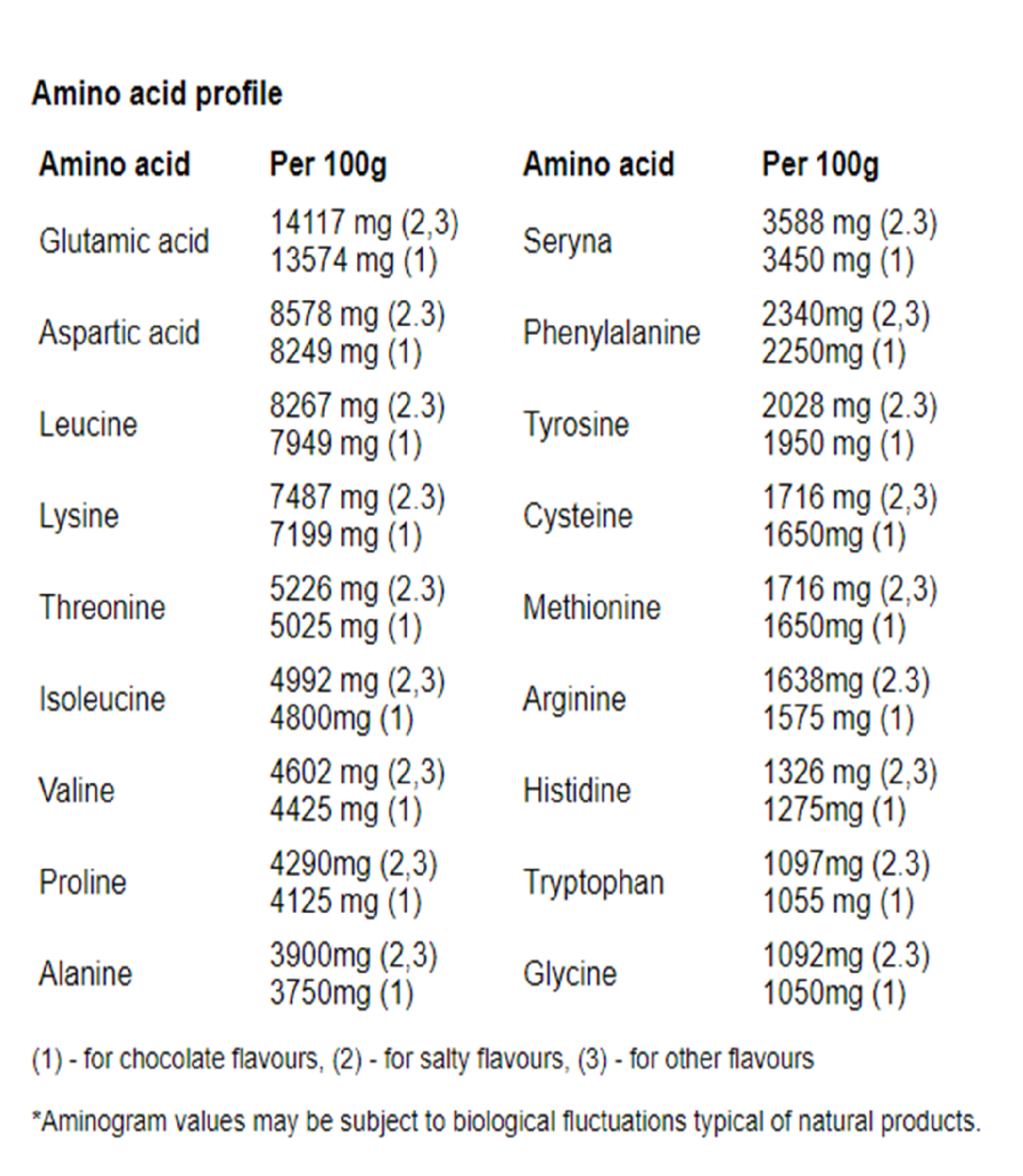 *Aminogram values may be subject to biological fluctuations typical of natural products.