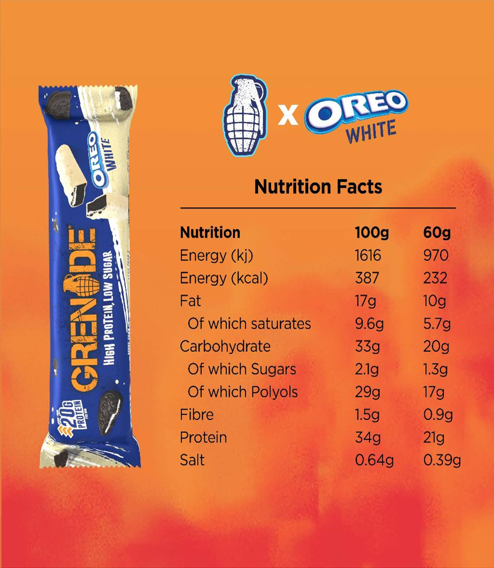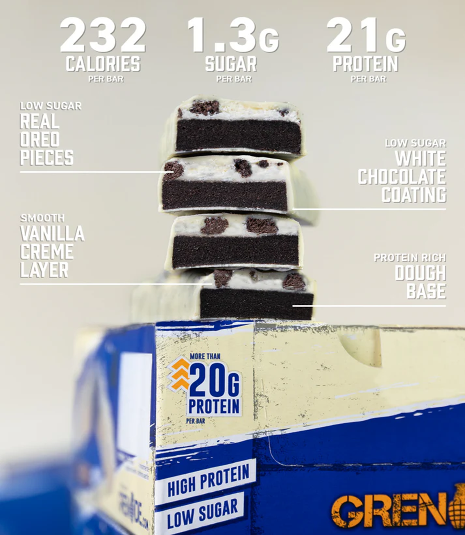 Grenade OREO Beyaz Protein Bar'ı tanıtıyoruz - disiplinin şımartmayla buluştuğu yer. 20g'dan fazla kas yakıtlı protein ve 2g'dan az şekerle kendinizi donatın, tüm bunları yaparken tat tomurcuklarınızı ikonik OREO beyaz çikolata patlamasıyla şarj edin.