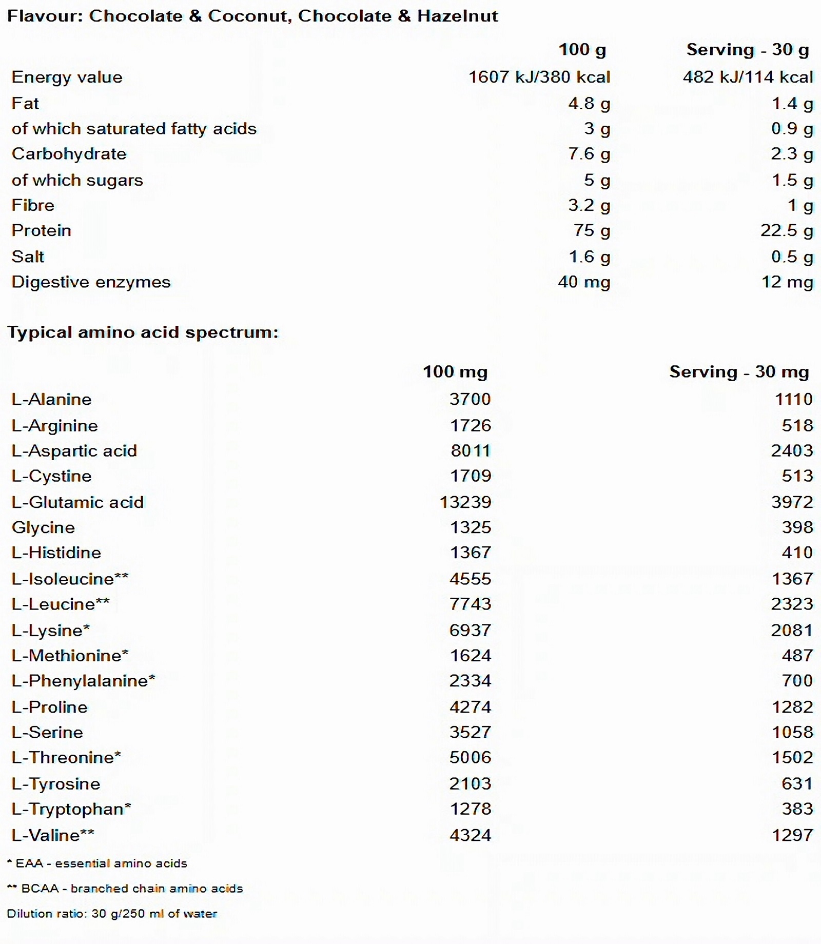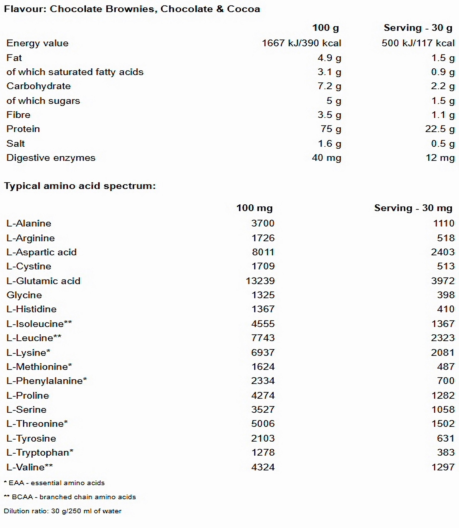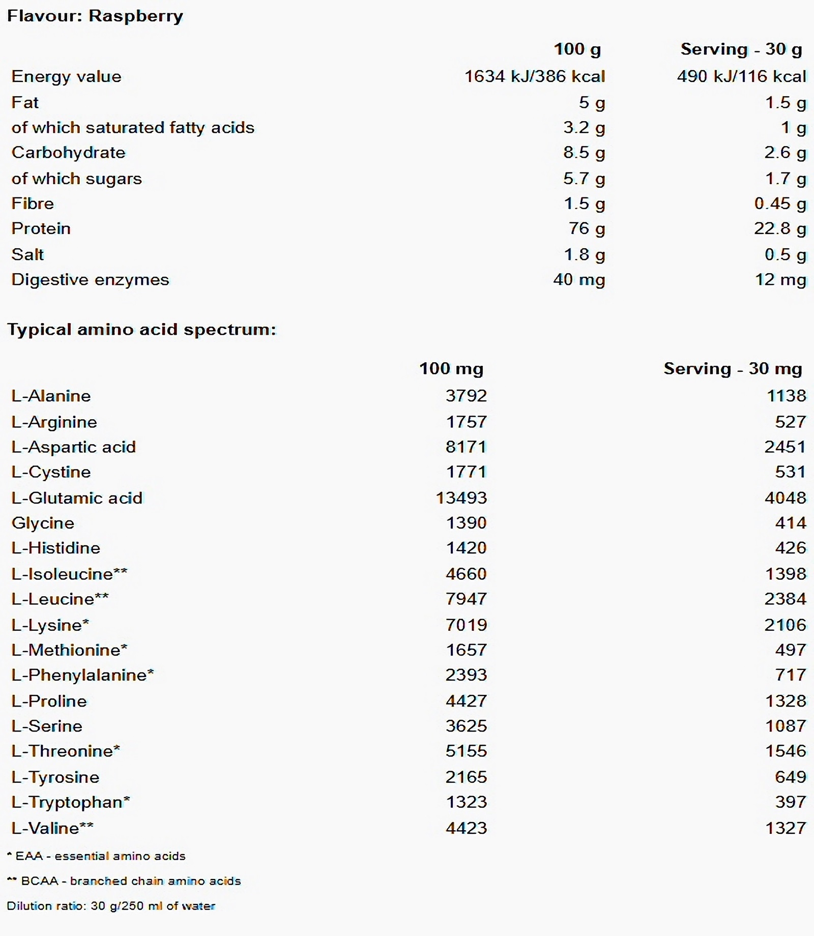 30 gr'lık bir dozu 250 ml su ile karıştırın. Günlük protein ihtiyacınıza göre günde 1-3 porsiyonu öğün aralarında tüketin. Günde en fazla 3 doz. Önerilen dozu aşmayın.