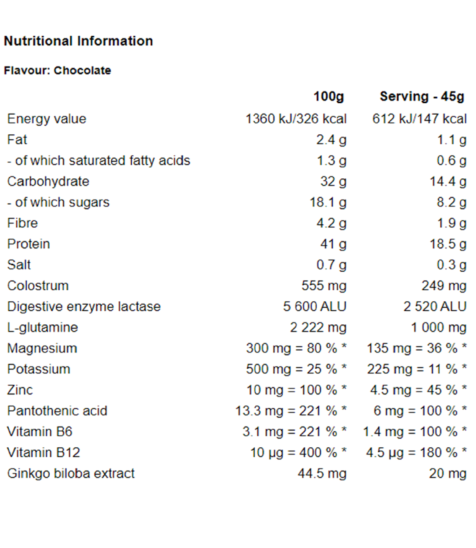 100g Serving - 45g