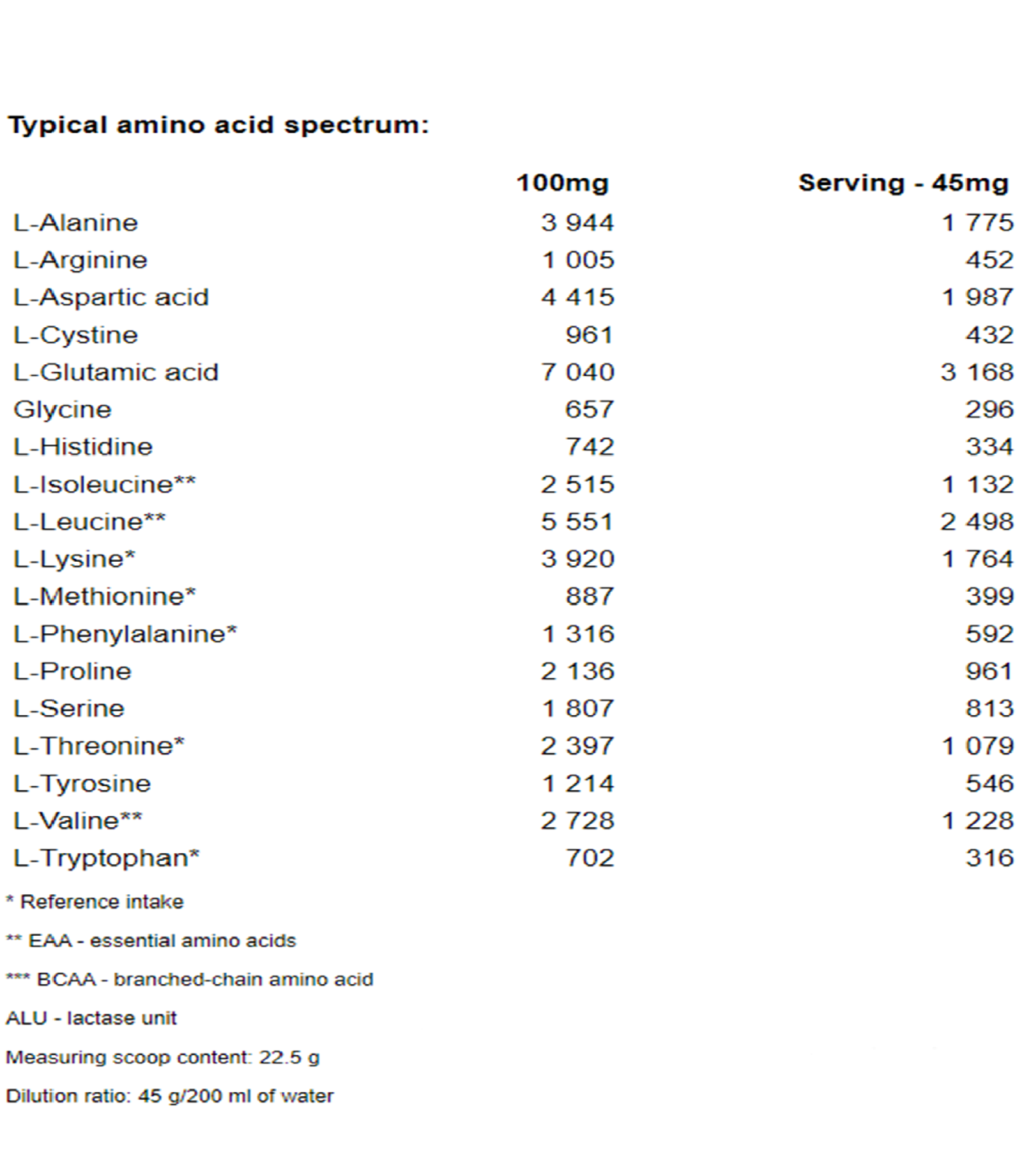 Typical amino acid spectrum: