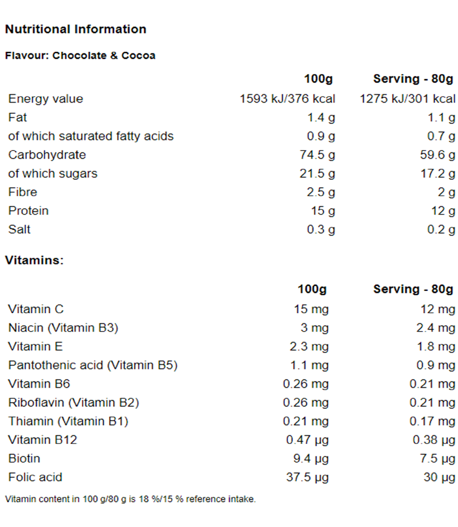 Vitamin content in 100 g/80 g is 18 %/15 % reference intake.