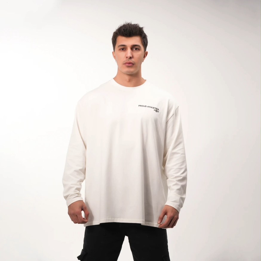 Proud Proud01 Uzun Kollu Oversize Tişört (Ekru)