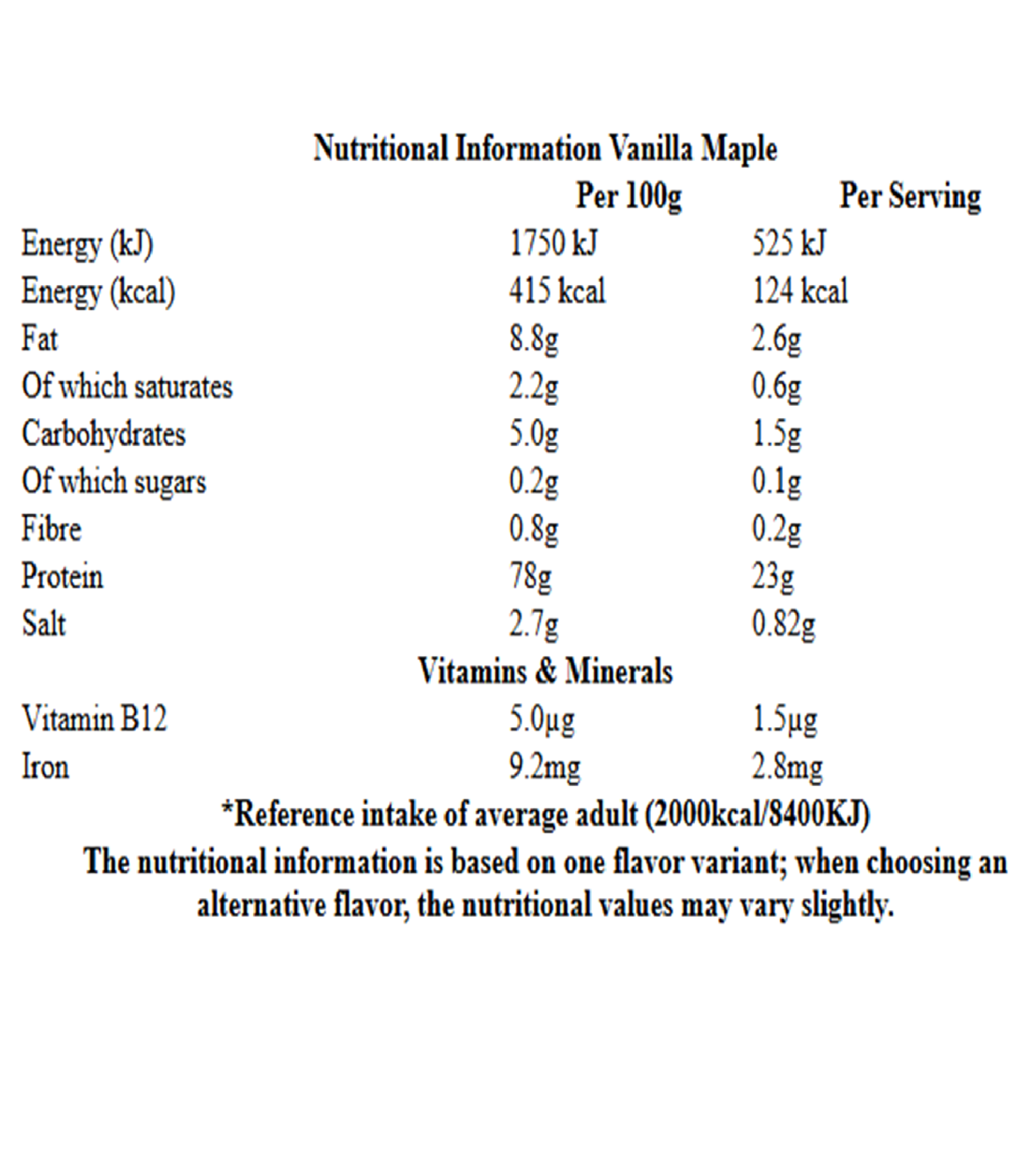 The nutritional information is based on one flavor variant; when choosing an alternative flavor, the nutritional values may vary slightly. |