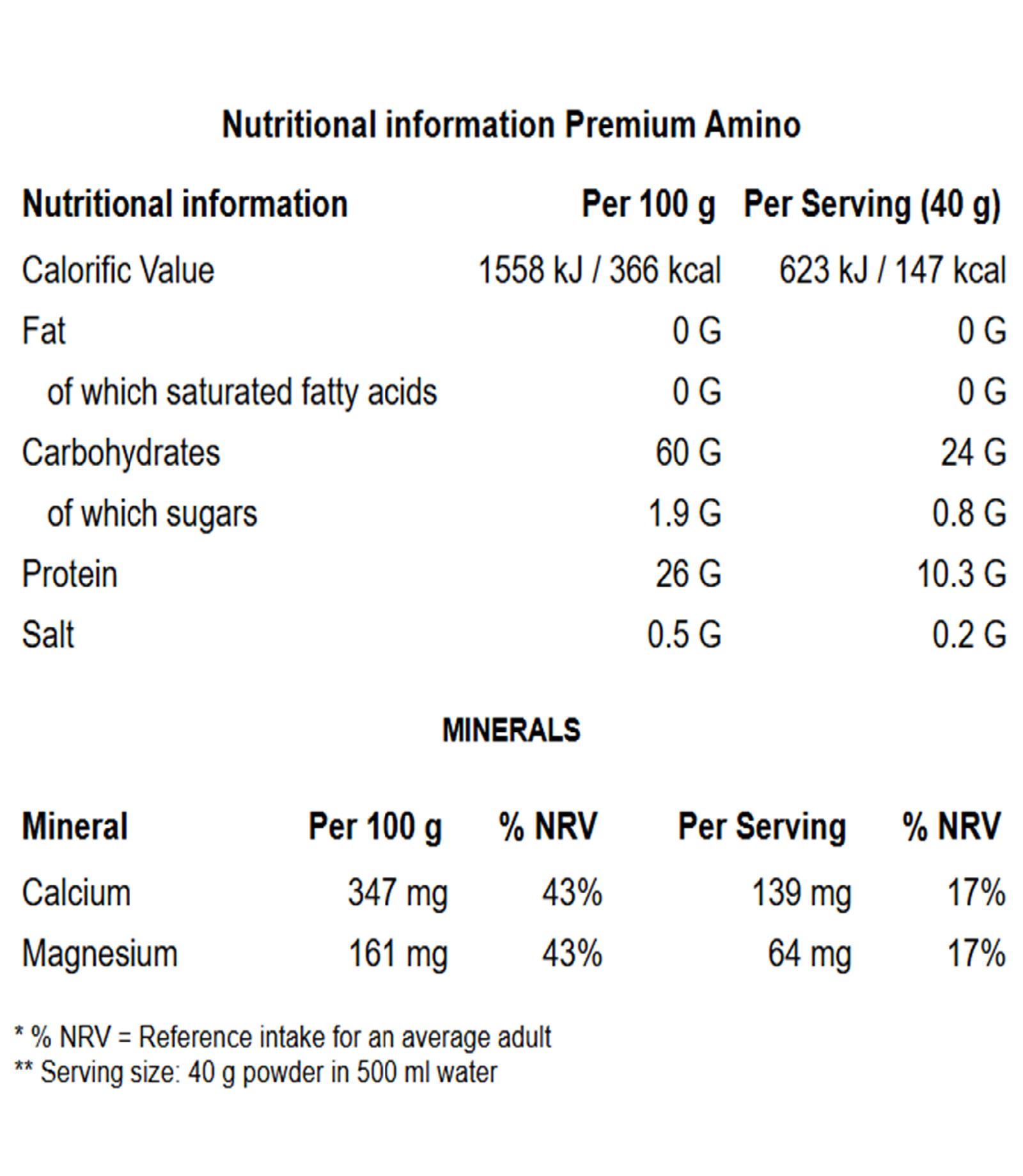Yüksek kaliteli Premium Amino Intra Workout Tozumuz, egzersiz sırasında tüketilmek üzere özel olarak tasarlanmıştır ve yoğun bir antrenman seansı sırasında ihtiyacınız olan her şeyi içerir. Premium Amino'muz, dokuz temel amino asidin (EAA) yanı sıra, serbest L-glutamin, maltodekstrin formunda kompleks karbonhidratlar ve önemli elektrolitler de sağlar.