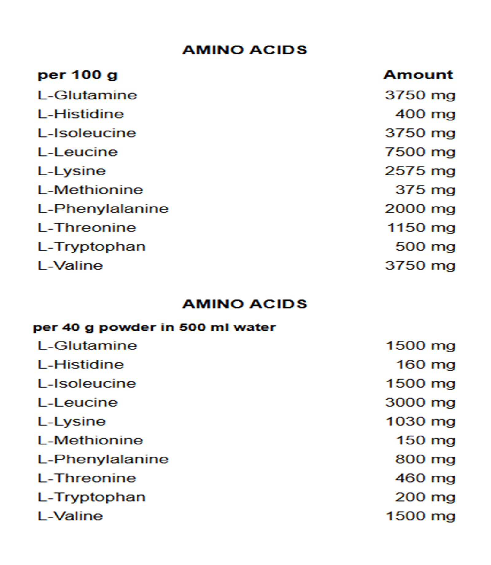 -Porsiyon başına 1,5 g L-glutamin ve önemli elektrolitler sağlar